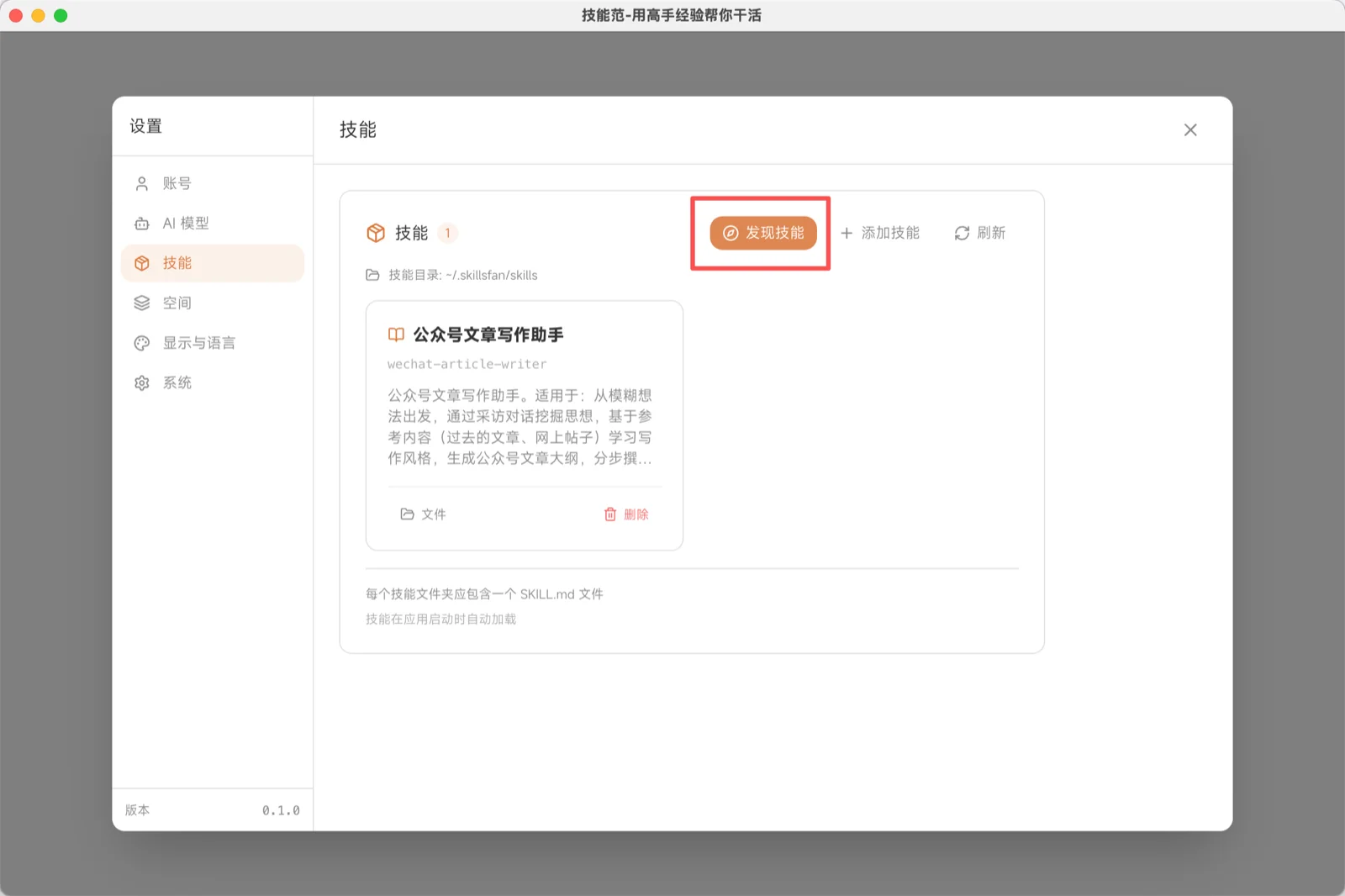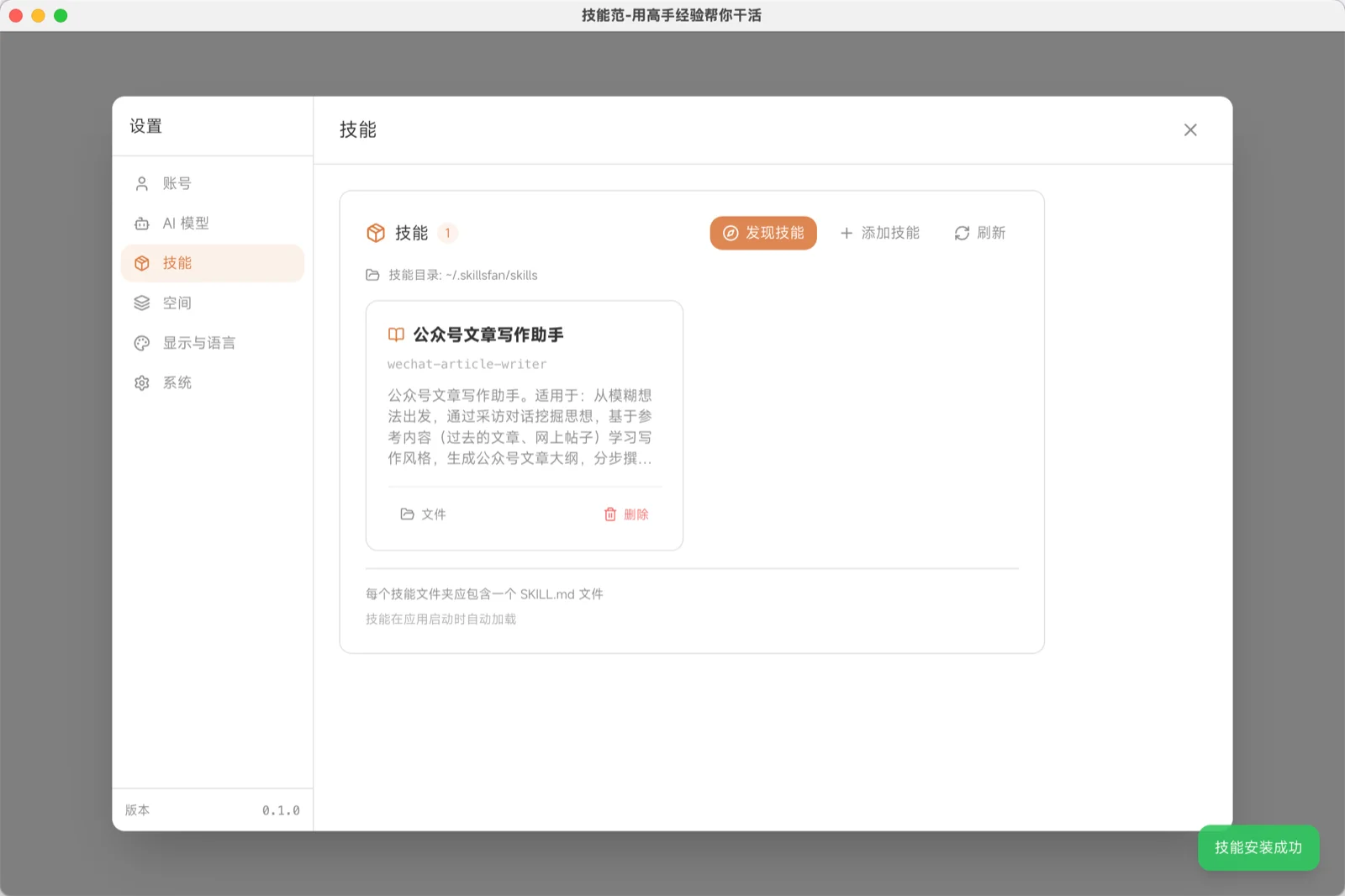 举例: 安装「文章写作」技能后,AI 能按特定风格帮你写文章,而不需要你每次都详细描述要求。