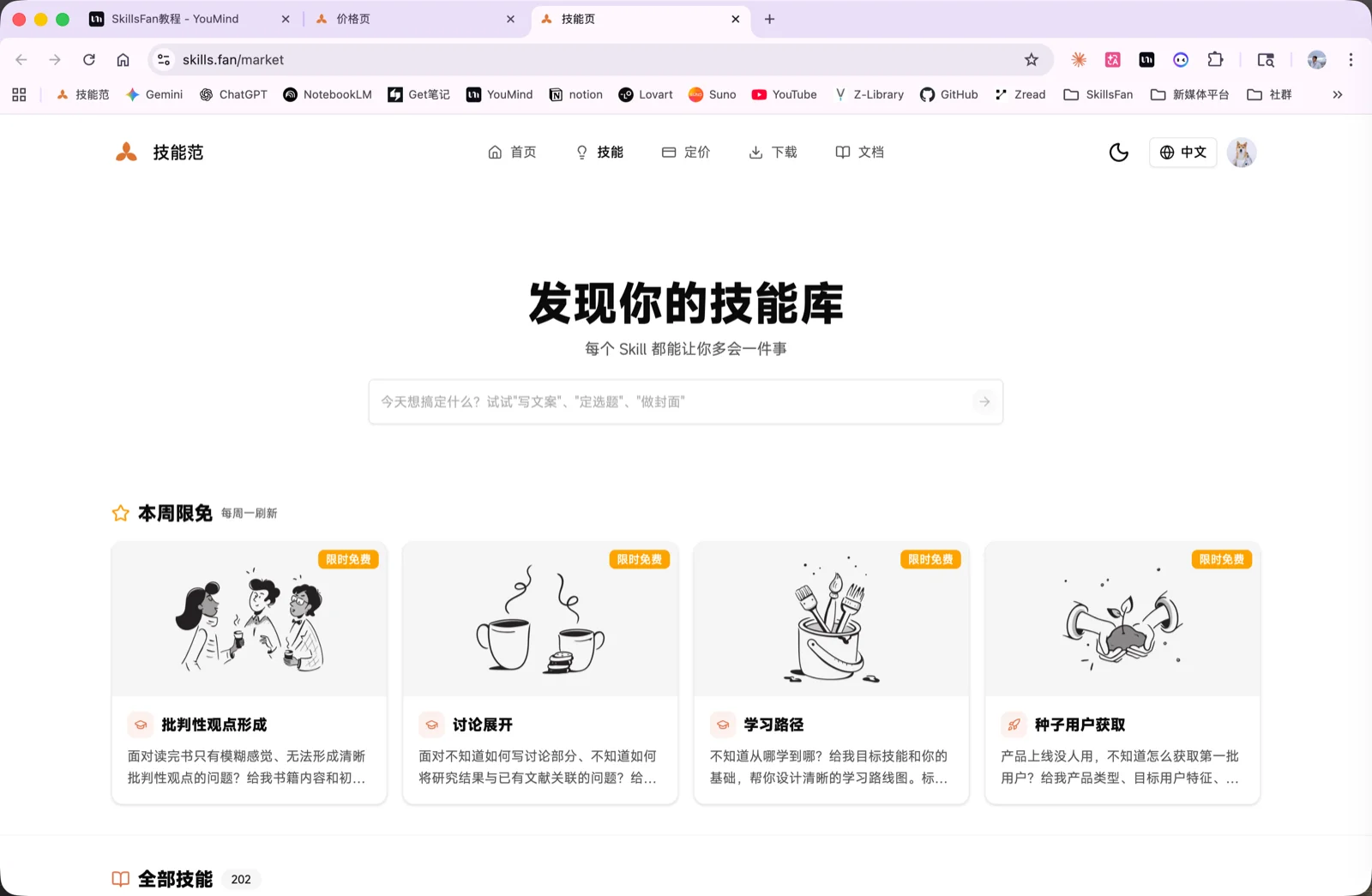 登录 SkillsFan 账号后,可以下载你感兴趣的技能。